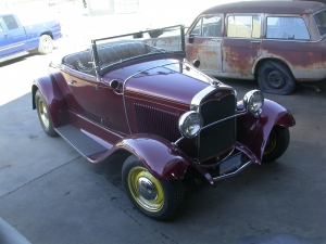 1931 FORD MODEL A ROADSTER SUPERCHARGED 327ci, AUTOMATIC, MAROON Exterior with TAN Interior, Stock #6017